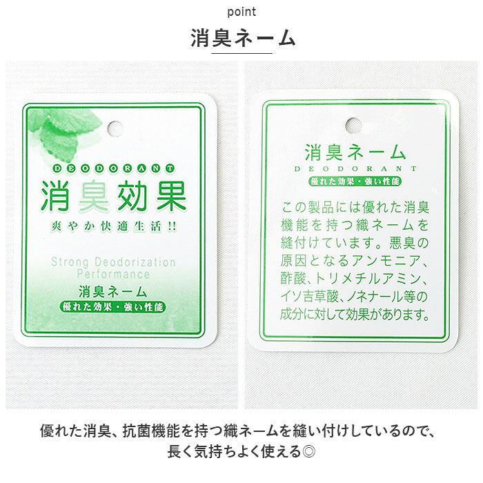 ・優れた消臭、抗菌機能を持つ織ネームを縫い付けしているので、長く気持ちよく使える◎