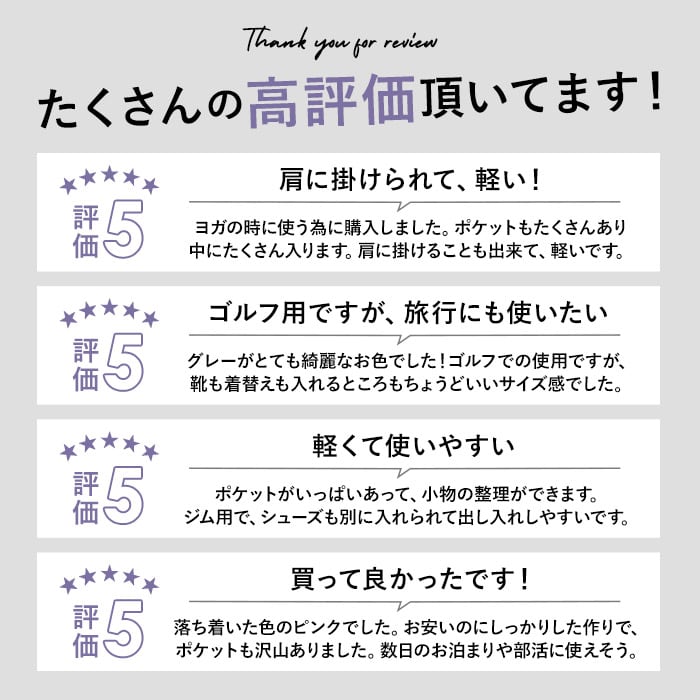 ・内側には小物類の整理に便利なオープンポケット×2、ファスナーポケット×1を装備。ファスナーポケットには、濡れたタオル等を分けて収納できるビニール生地を採用。(※水を弾く素材生地を使用しておりますが、ファスナー開口部から水漏れの可能性があり、完全防水ではありません。)