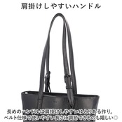 ・長めのハンドルは肩掛けしやすいゆとりある作り。ベルト仕様で使いやすい長さに調節できるのも嬉しいポイント。