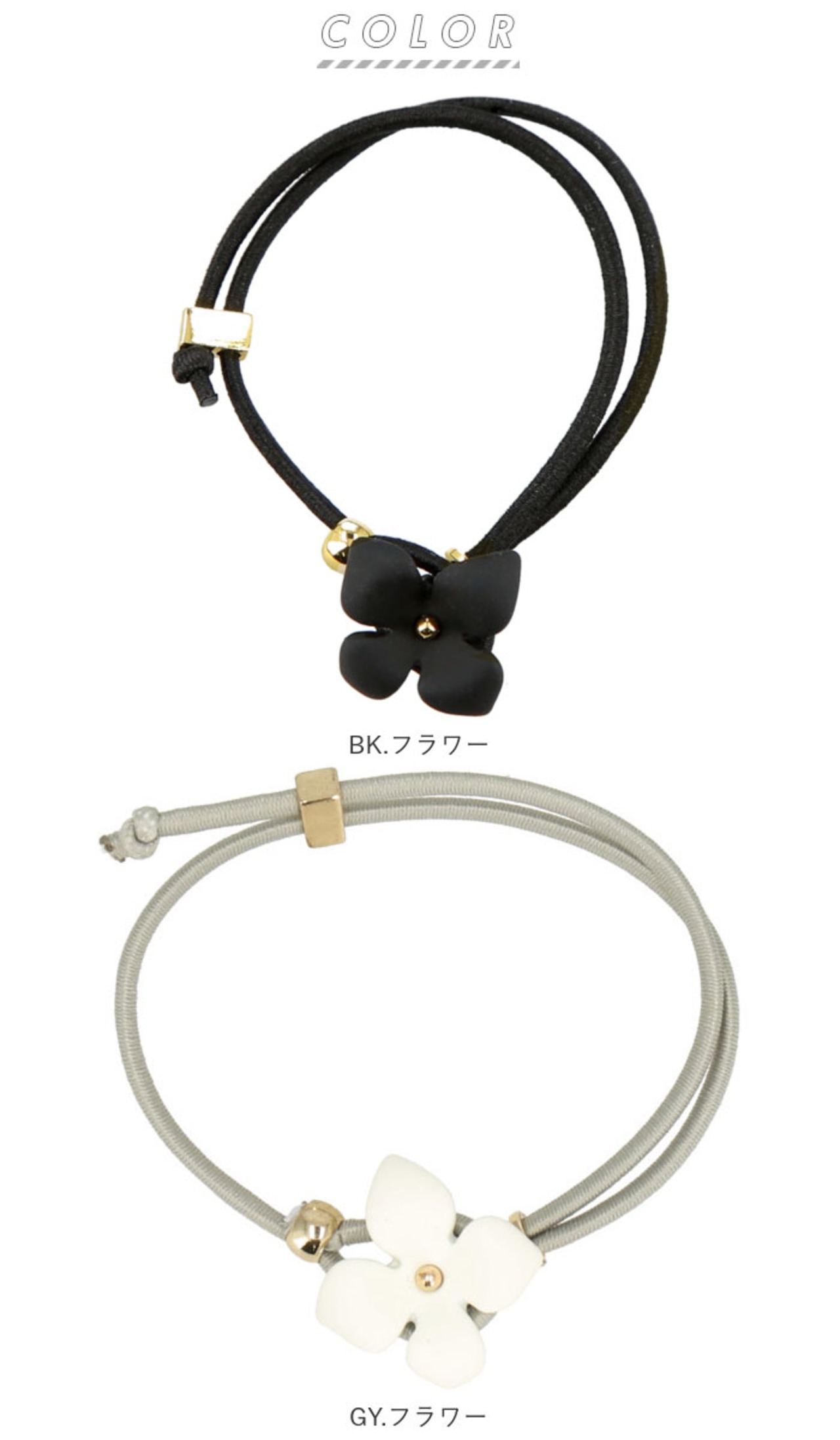・ゴムの先端の小さな輪っかをモチーフから取り外すことができるので、ヘアゴムとしてだけでなく、ブレスレットやアンクレットにしても可愛い♪
