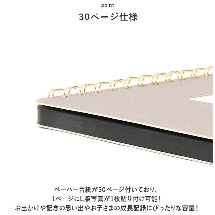 ・ペーパー台紙が30ページ付いており、1ページにL版写真が1枚貼り付け可能!お出かけや記念の思い出やお子さまの成長記録にぴったりな容量!