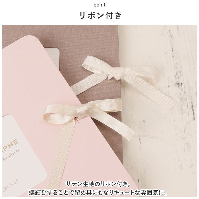 ・サテン生地のリボン付き。蝶結びすることで留め具にもなりキュートな雰囲気に。