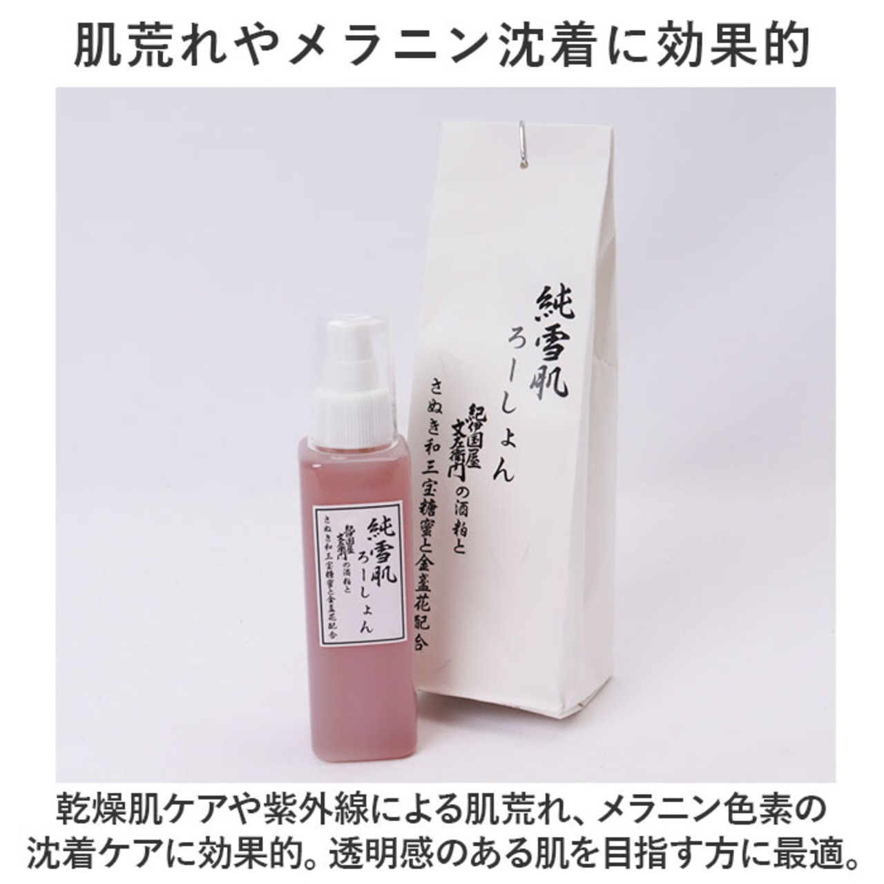 ・朝夜のスキンケアで使用し、潤い満ちた健康的な肌へ導く。純雪肌シリーズの組み合わせもお勧め。