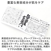 ・美容成分が50%以上。グレープフルーツ、ヘチマエキス、トウキンセンカ花エキス、プラセンタエキス、水溶性コラーゲン、ヒアルロン酸をベースに、糖蜜、酒粕エキス、アロエベラ葉エキスなど配合。角質のケアやUV防御、肌の衰えに効果的。