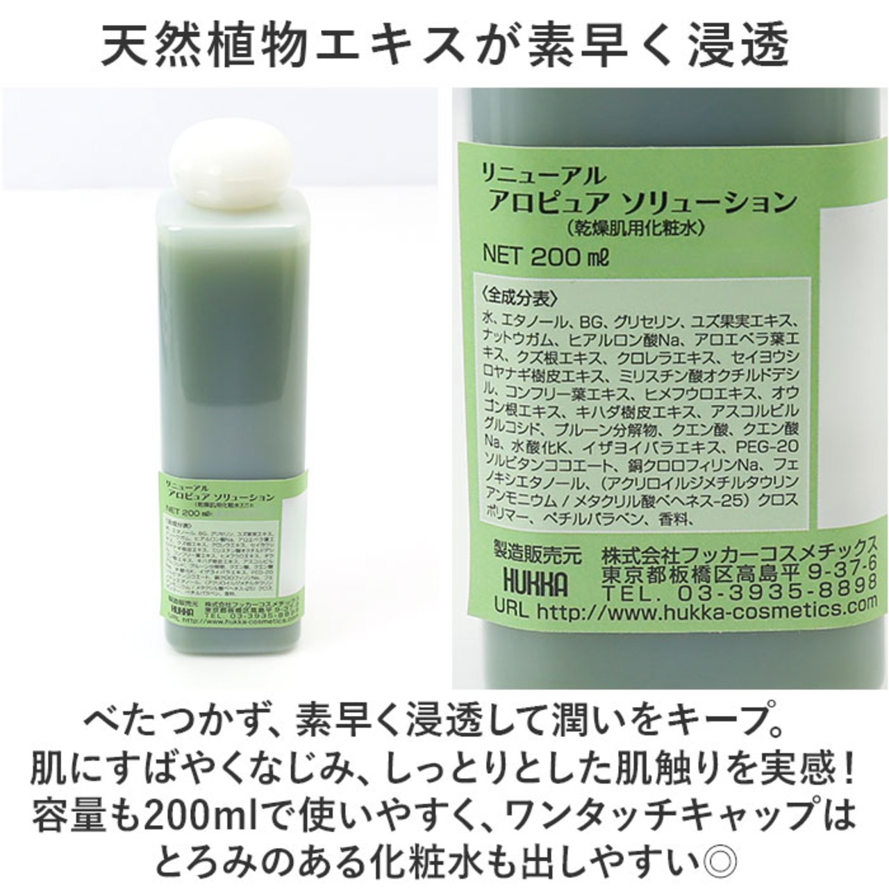 化粧水 全身 通販 日本製 アロエ配合 アロピュア アソリューション 200ml ローション 全身保湿化粧水 ボディケア 基礎化粧品 フェイスケア スキンケア 乾燥肌 フッカーコスメチックス ビューティー コスメ 美容 ギフト 母の日 誕生日
