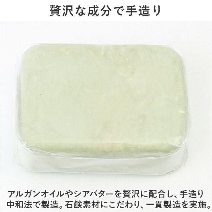 ・アルガンオイルやシアバターを贅沢に配合し、手造り中和法で製造。石鹸素材にこだわり、一貫製造を実施。