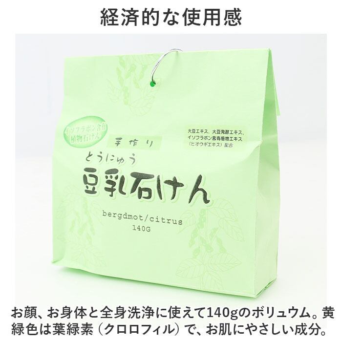 ・お顔、お身体と全身洗浄に使えて140gのボリュウム。黄緑色は葉緑素(クロロフィル)で、お肌にやさしい成分。