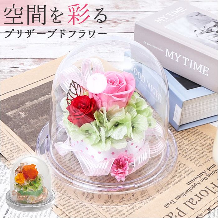 プリザーブドフラワー ガラスドーム 通販 ドームコレクション ラウンドドームMS アーティフィシャルフラワー アレンジメントフラワー 造花 フラワーアレンジメント 花 ギフト フラワーギフト 誕生日 母の日 おしゃれ かわいい 置物 ギフト インテリア 雑貨