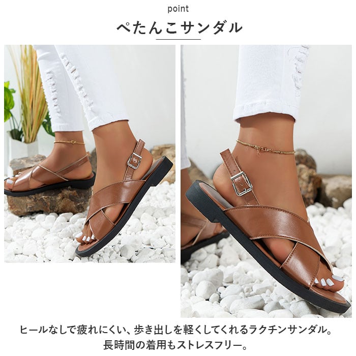 サンダル ストラップ レディース 通販 コンフォートサンダル クロスサンダル ペタンコサンダル フラット クロス ぺたんこ オープントゥ バックストラップ 歩きやすい 疲れにくい シューズ シンプル カジュアル かわいい おしゃれ