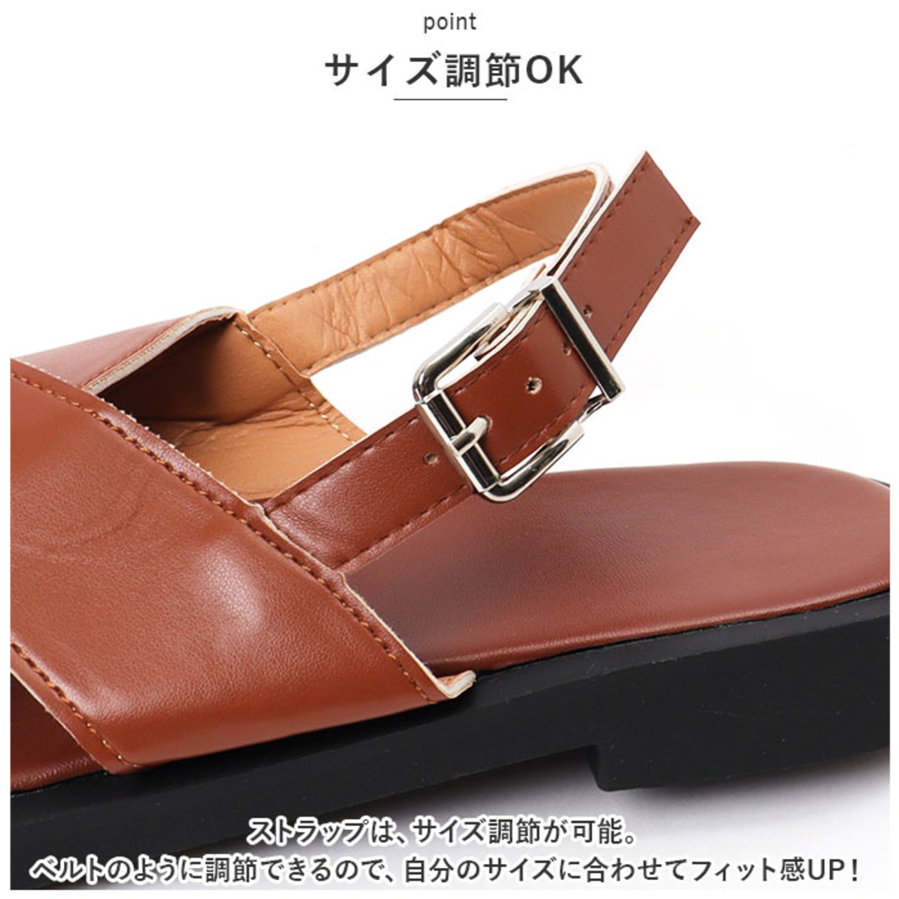 ・ストラップは、サイズ調節が可能。ベルトのように調節できるので、自分のサイズに合わせてフィット感UP!