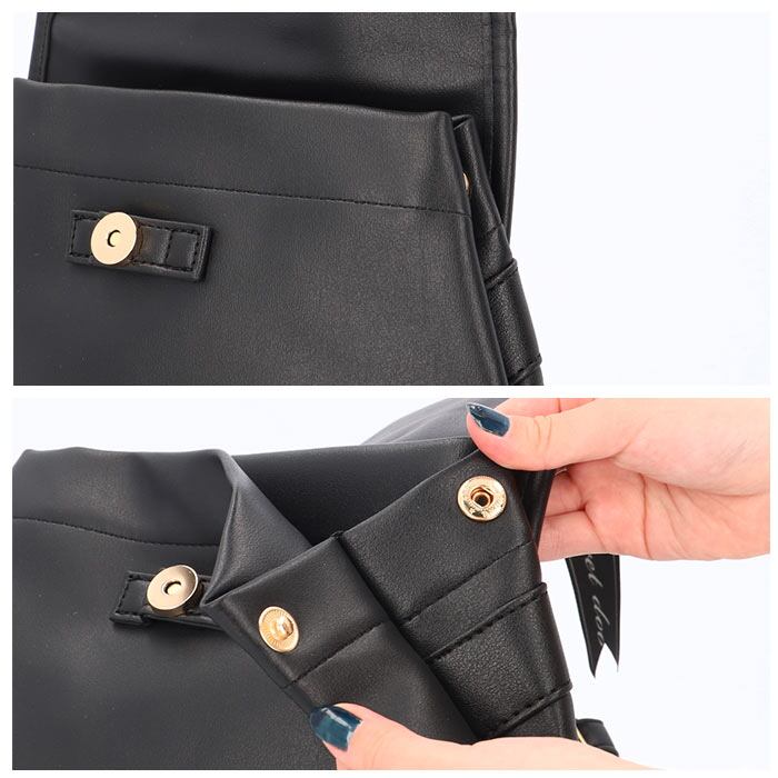 ・開口部は片手で簡単オープンできる、マグネット式。しっかり包み込んでくれるフラップタイプなので、中身が飛び出す心配も不要◎サイドにもマグネットボタン付き。