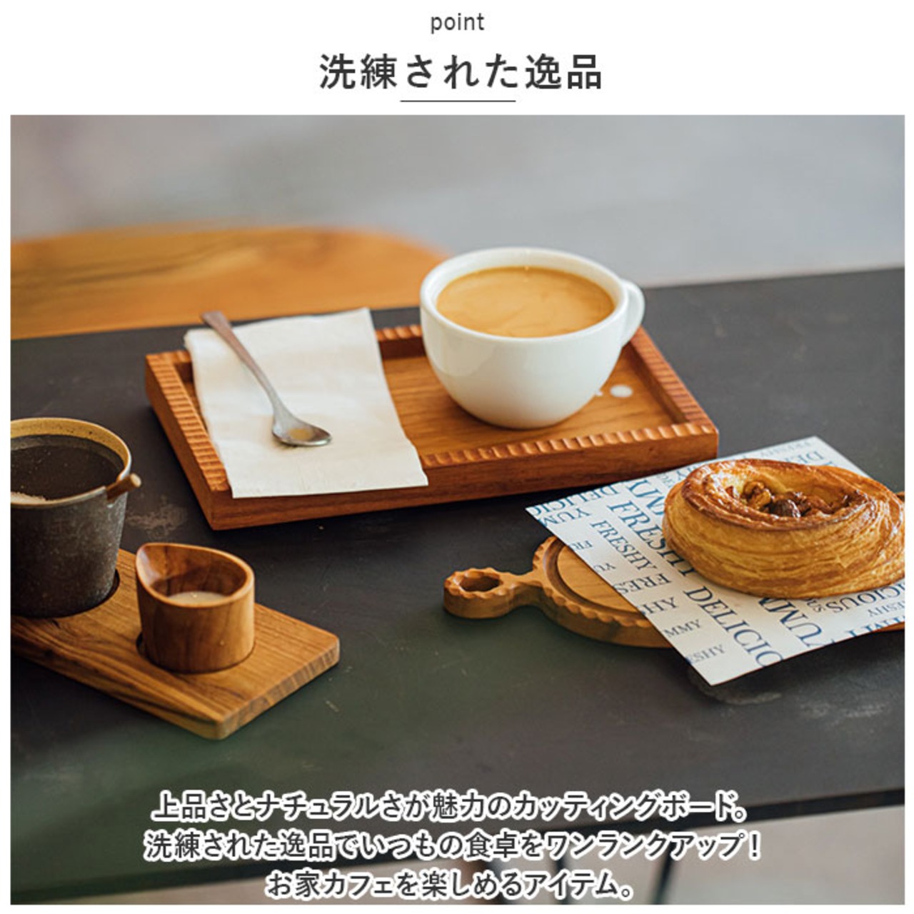 ・上品さとナチュラルさが魅力のカッティングボード。洗練された逸品でいつもの食卓をワンランクアップ!お家カフェを楽しめるアイテム。