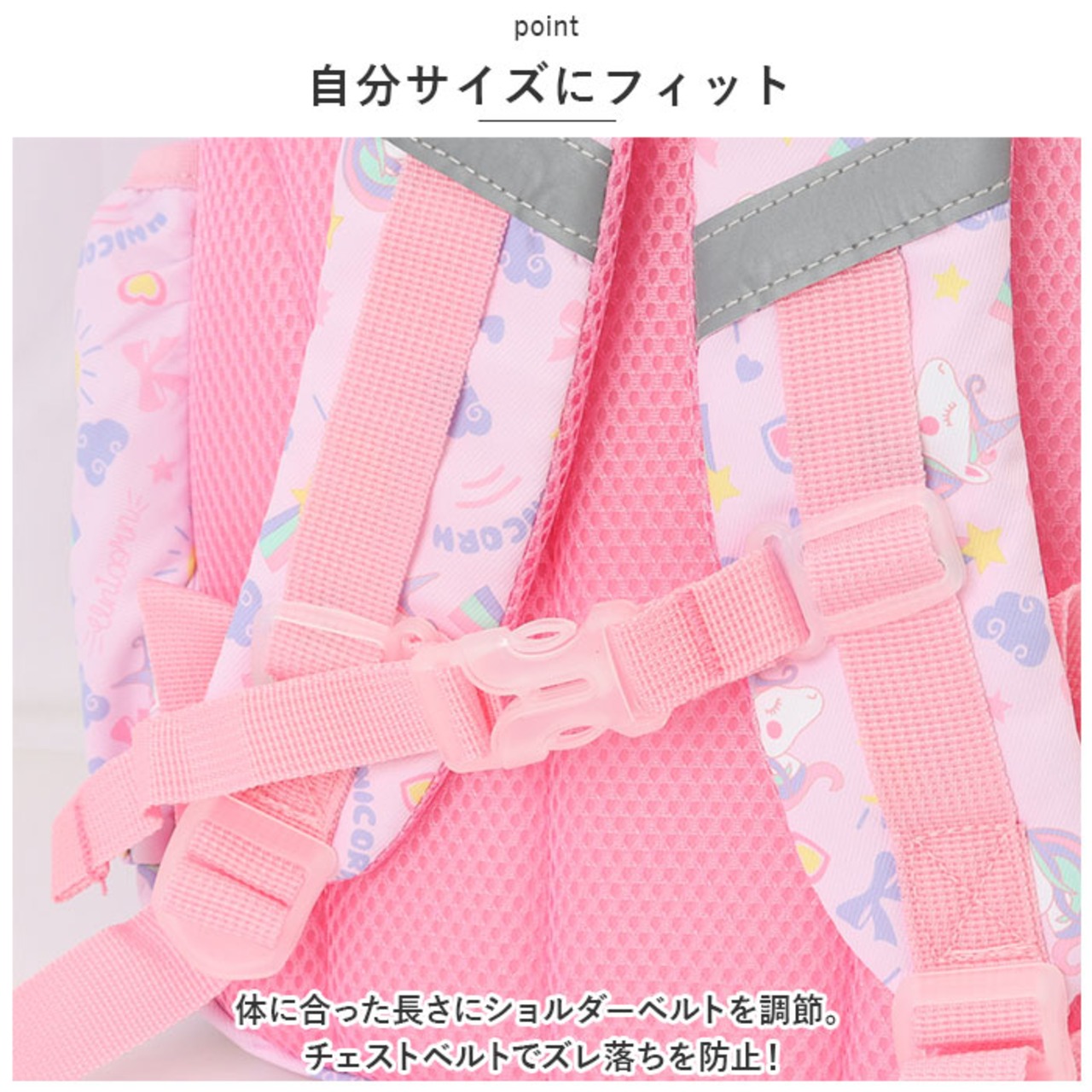 ・体に合った長さにショルダーベルトを調節。チェストベルトでズレ落ちを防止!