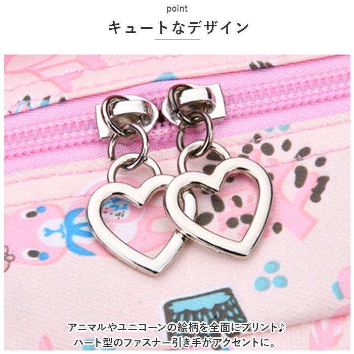 ・アニマルやユニコーンの絵柄を全面にプリント♪ハート型のファスナー引き手がアクセントに。