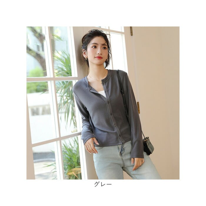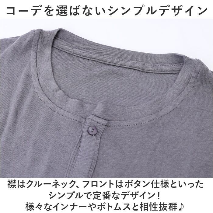 ・襟はクルーネック、フロントはボタン仕様といったシンプルで定番なデザイン!様々なインナーやボトムスと相性抜群♪
