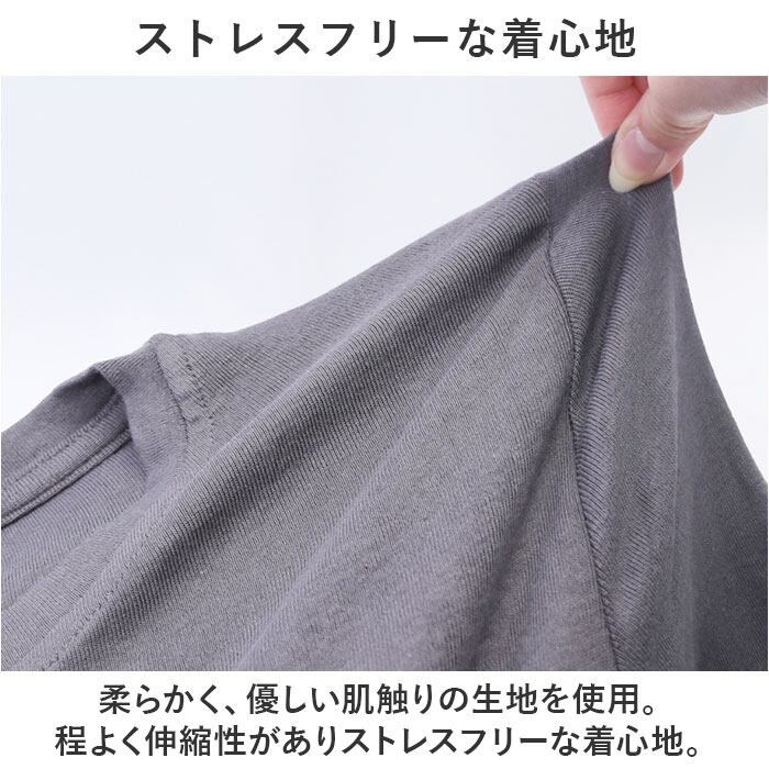 ・柔らかく、優しい肌触りの生地を使用。程よく伸縮性がありストレスフリーな着心地。