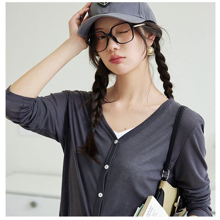 ニット カーディガン レディース 通販 ニットカーディガン 長袖カーディガン 上着 羽織 羽織り Vネック 薄手 長袖 ボタン 前開き 冷房対策 寒さ対策 シンプル カジュアル 無地 ベーシック 韓国 ファッション 春服 春 夏服 夏 婦人服