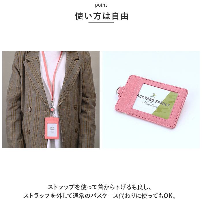 ・ストラップを使って首から下げるも良し、ストラップを外して通常のパスケース代わりに使ってもOK。