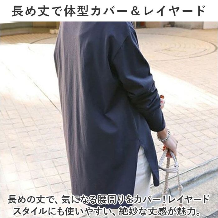 ・長めの丈で、気になる腰周りをカバー!レイヤードスタイルにも使いやすい、絶妙な丈感が魅力。