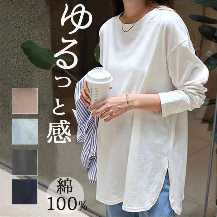 ・コットンを100%!オーバーサイズでラフな着こなしがキマる☆クルーネック長袖Tシャツ が登場。