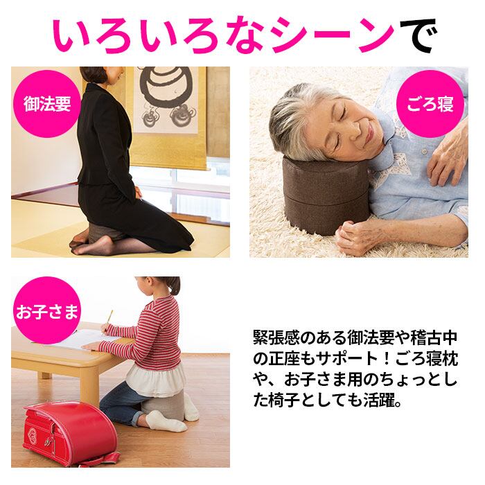 ・緊張感のある御法要や稽古中の正座もサポート!ごろ寝枕や、お子さま用のちょっとした椅子としても活躍。