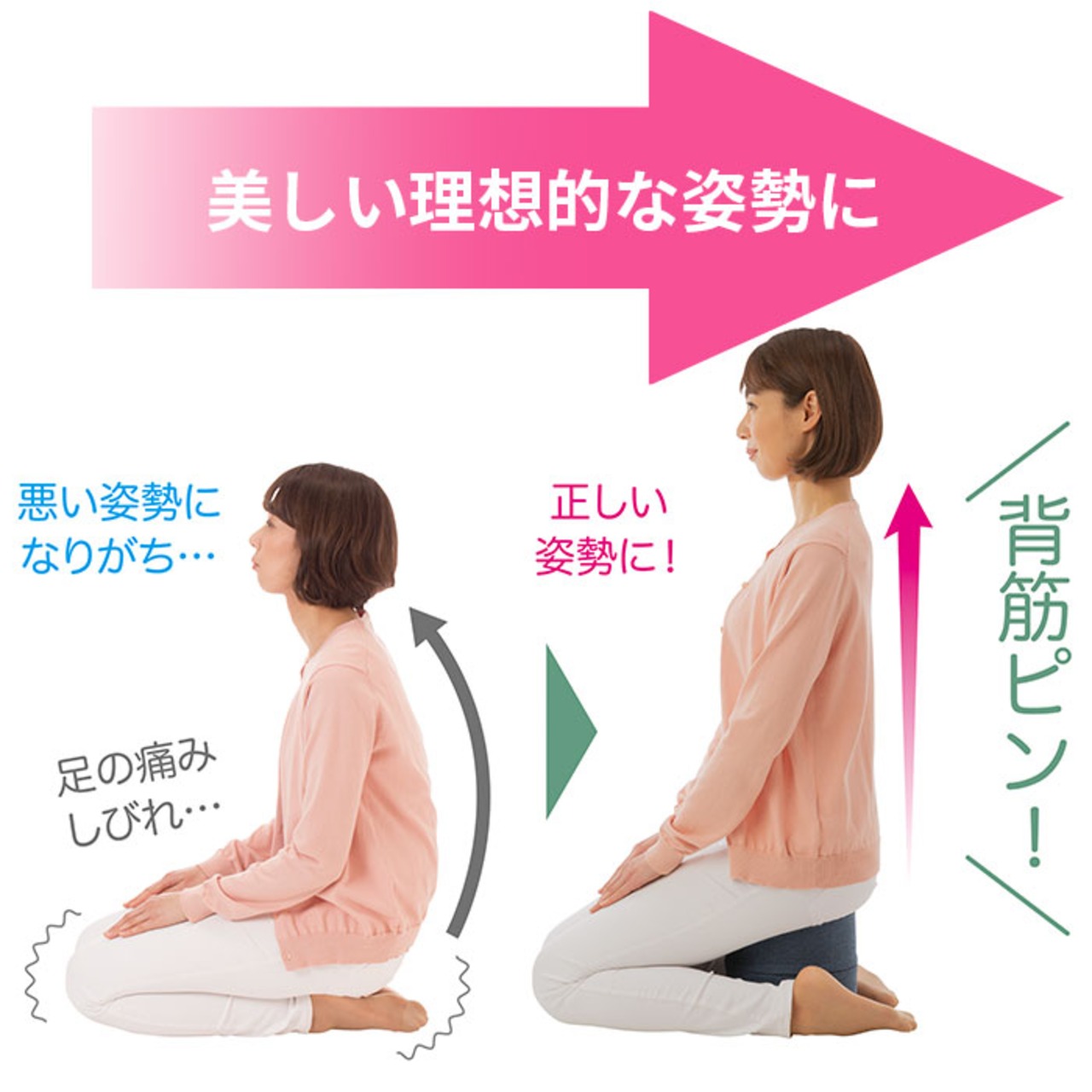 ・お尻の下に忍ばせるだけ!自然と背筋が伸びて、美姿勢をキープ♪