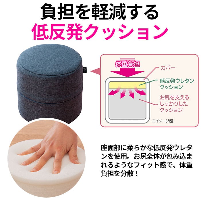 ・座面部に柔らかな低反発ウレタンを使用。お尻全体が包み込まれるようなフィット感で、体重負担を分散!