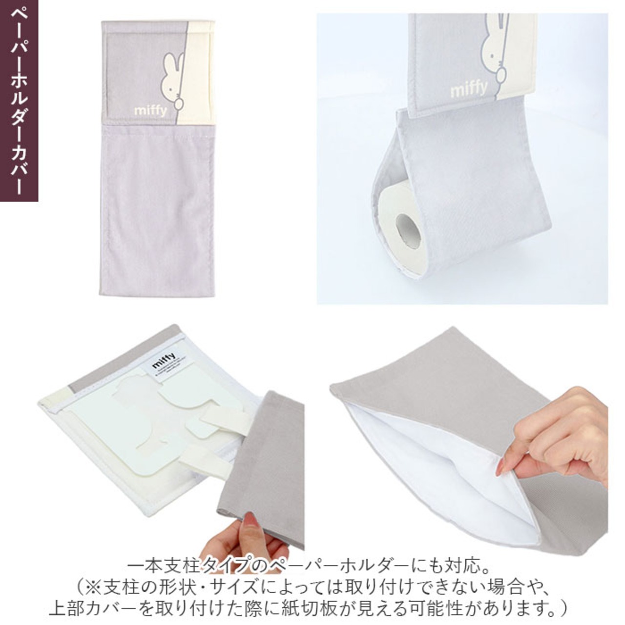 ・一本支柱タイプのペーパーホルダーにも対応。(※支柱の形状・サイズによっては取り付けできない場合や、上部カバーを取り付けた際に紙切板が見える可能性があります。)