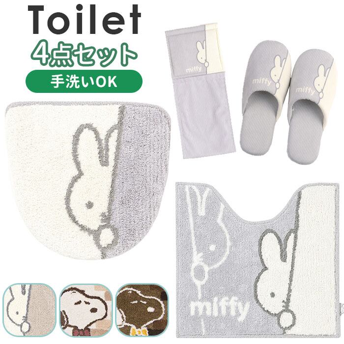 トイレマット 4点 セット ミッフィー 通販 キャラクター グッズ 大人 おしゃれ トイレふたカバー トイレットペーパーホルダーカバー 北欧風 スリッパ トイレ用品 新生活 トイレファブリック かわいい 可愛い ギフト 雑貨 インテリア