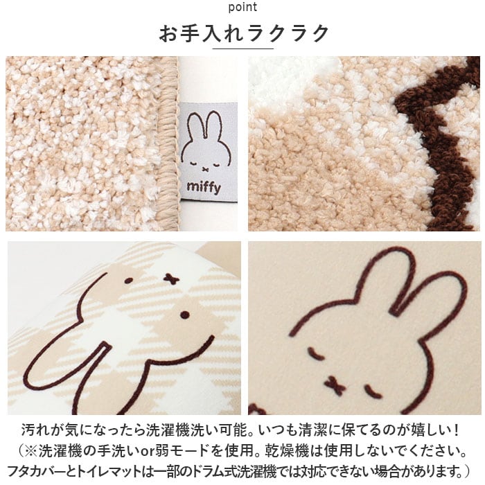 ・汚れが気になったら洗濯機洗い可能。いつも清潔に保てるのが嬉しい!(※洗濯機の手洗いor弱モードを使用。乾燥機は使用しないでください。フタカバーとトイレマットは一部のドラム式洗濯機では対応できない場合があります。)