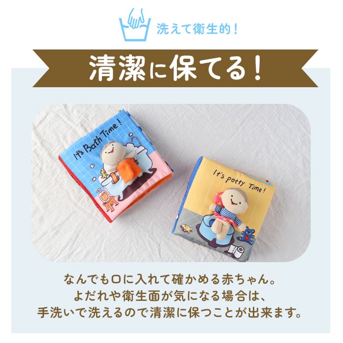 ・絵本を見て学びながら、お洋服を自分で着たり、おトイレだってひとりでいけるもん♪ベビーの知育からキッズの「ひとりでできた!」まで、長く遊べるのもママパパに支持される魅力のひとつ。