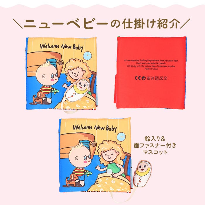 ・クッション性のあるスポンジを布で包みこんで仕上げたふわふわえほん。ページが破れる心配がなく、赤ちゃんが絵本を放り投げたり、ページをかじっても安心な素材感。