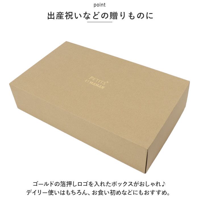 ・ゴールドの箔押しロゴを入れたボックスがおしゃれ♪デイリー使いはもちろん、お食い初めなどにもおすすめ。
