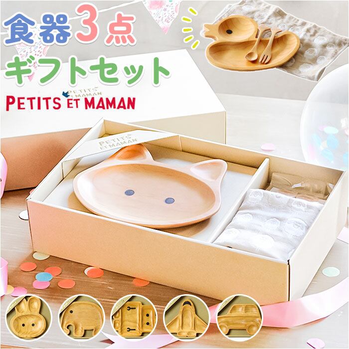 食器 ギフト 通販 プチママン ギフトセット ランチプレート 皿 キッズプレート お皿 子供用 木製 女の子 男の子 出産祝い 誕生日祝い お食い初め ベビー 赤ちゃん かわいい おしゃれ ギフト ウッドトレイ ウッドトレー ベビー食器 キッズ食器