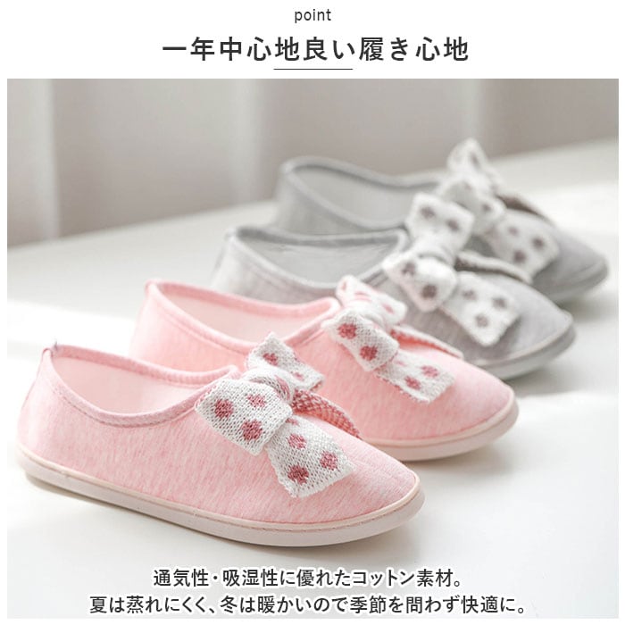ルームシューズ かかと付き 通販 室内履き スリッポン 室内 レディース かわいい シンプル 入院 スリッパ 院内シューズ 軽量 軽い 出産 マタニティ 産前 産後 リボン ドット 綿 柔らかい 履きやすい 歩きやすい 前