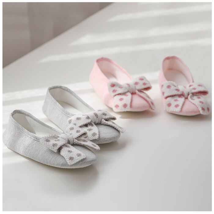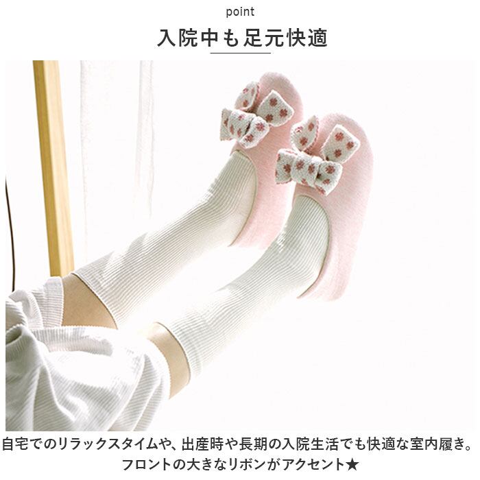 ・自宅でのリラックスタイムや、出産時や長期の入院生活でも快適な室内履き。フロントの大きなリボンがアクセント★