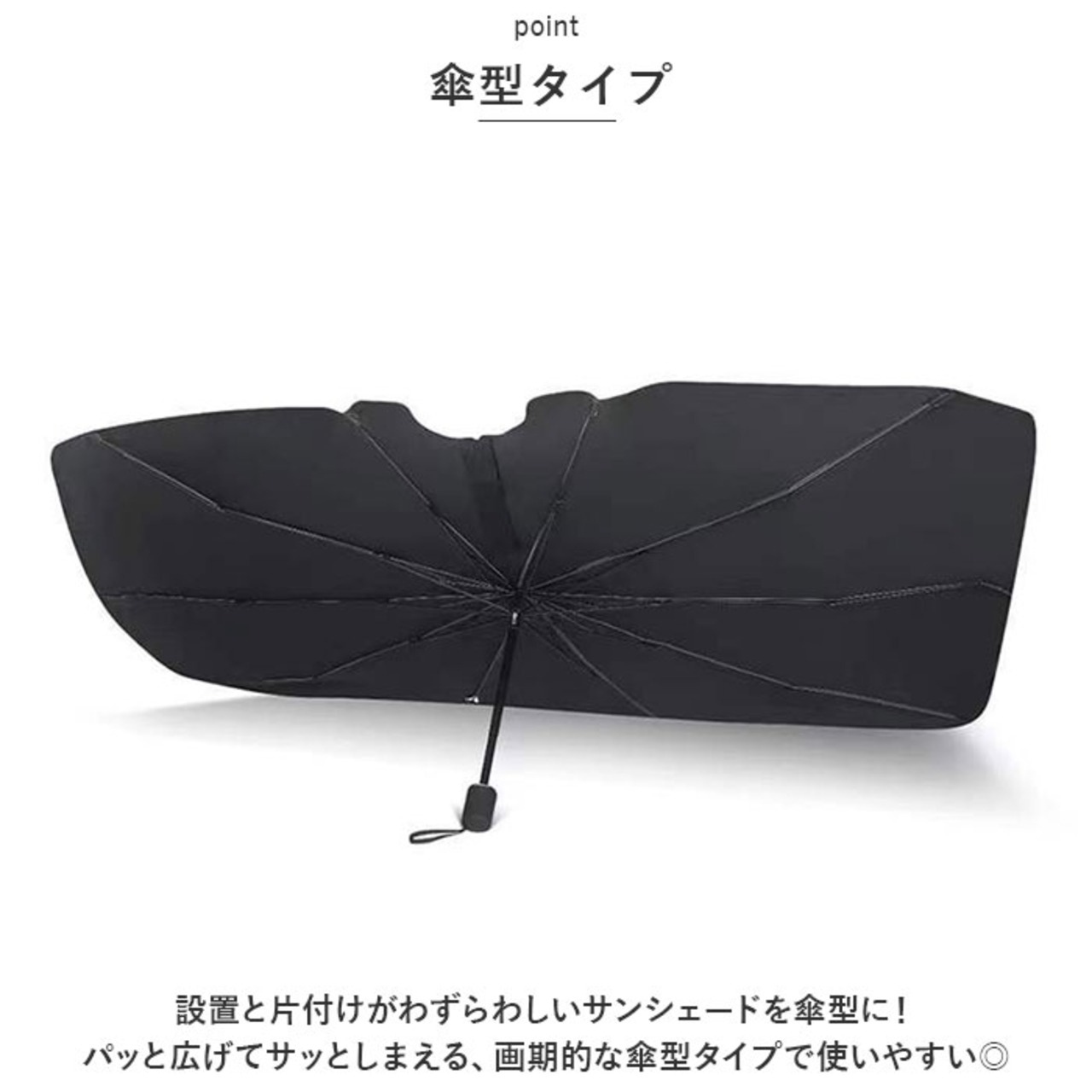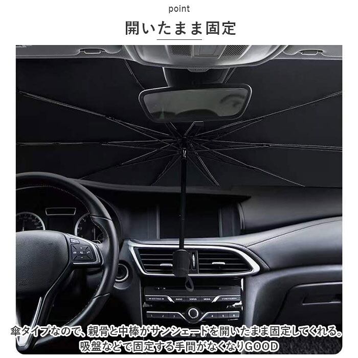 ・パッと開くだけ、簡単設置◎傘タイプのサンシェードで快適なカーライフを♪「車用サンシェード」が登場