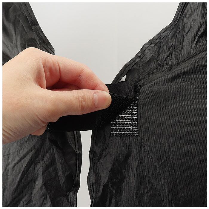 ・サンシェードを束ねるベルトは、面ファスナーつきでとめやすい。傘と同じ要領で片付けができる。