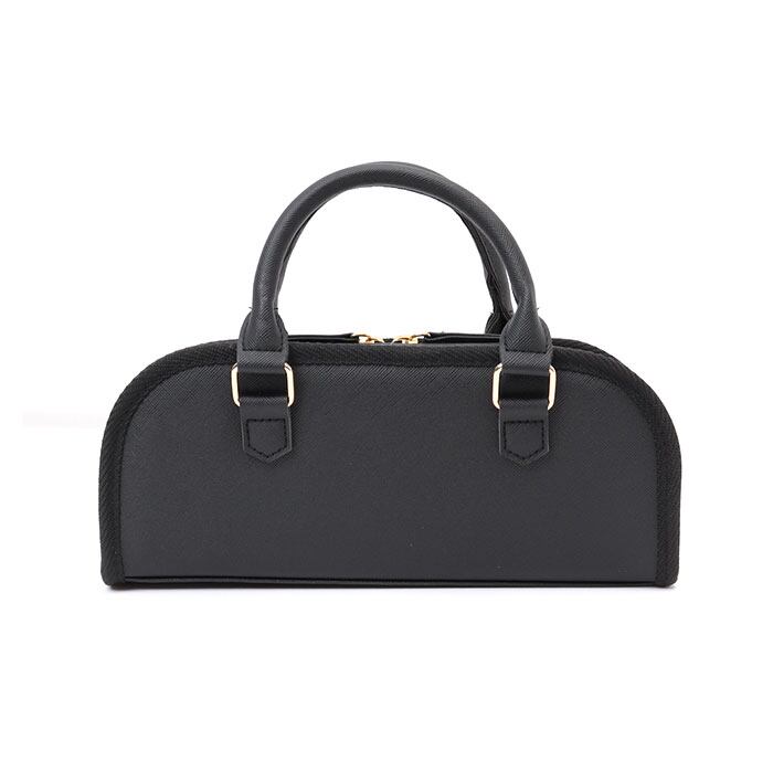 ・バッグは芯入りのマチ付きで安定感のあるつくり。大きく開いて中身が確認しやすいラウンドファスナー式。