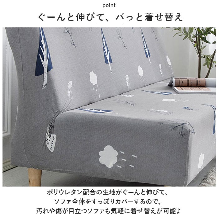 ・ポリウレタン配合の生地がぐーんと伸びて、ソファ全体をすっぽりカバーするので、汚れや傷が目立つソファも気軽に着せ替えが可能♪
