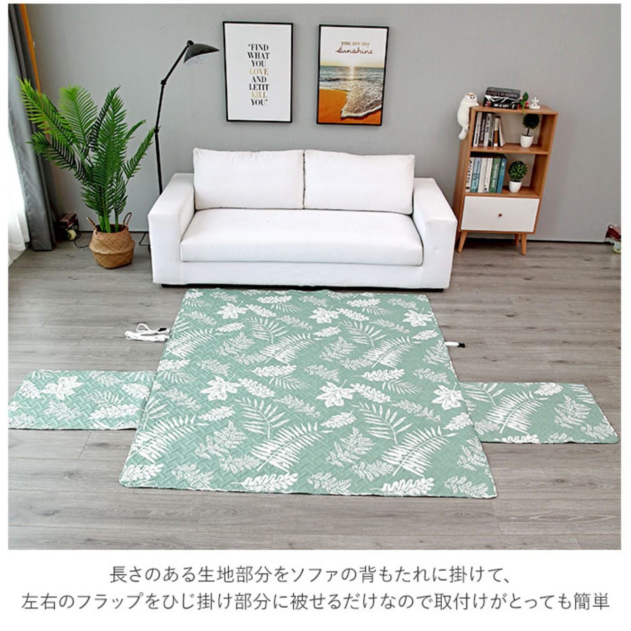 ・長さのある生地部分をソファの背もたれに掛けて、左右のフラップをひじ掛け部分に被せるだけなので取付けがとっても簡単。固定ベルトもありズレにくい。