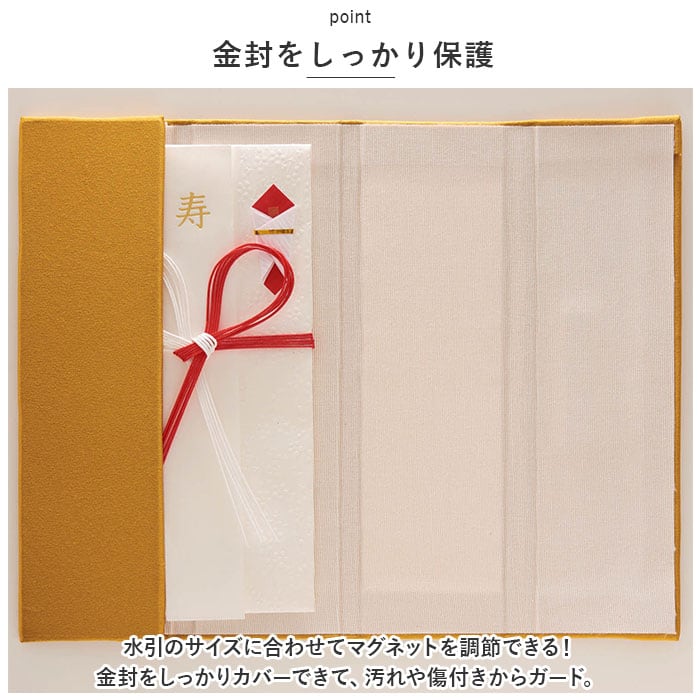 ・水引のサイズに合わせてマグネットを調節できる!金封をしっかりカバーできて、汚れや傷付きからガード。