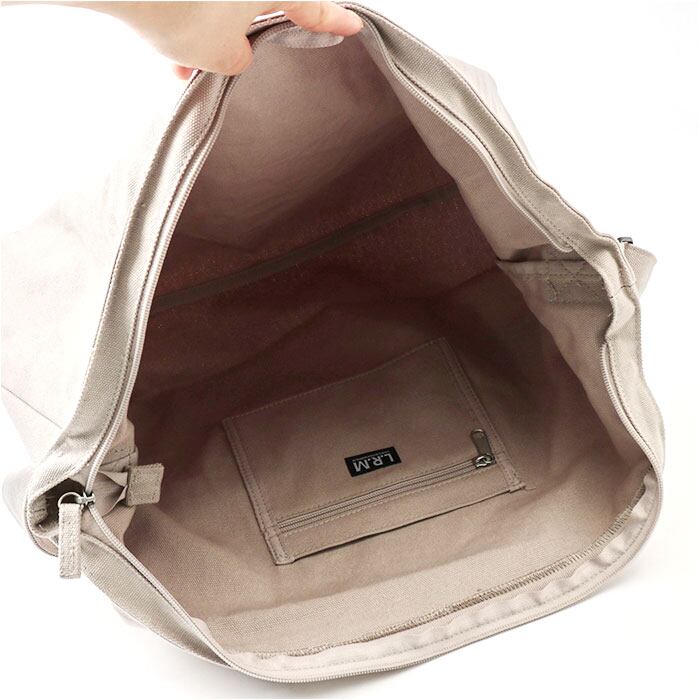 ・内側はA4サイズがすっぽり収まる大きさ。お出かけに必要な荷物をざっくり収納でき、柔らかな素材で体のラインにフィット。