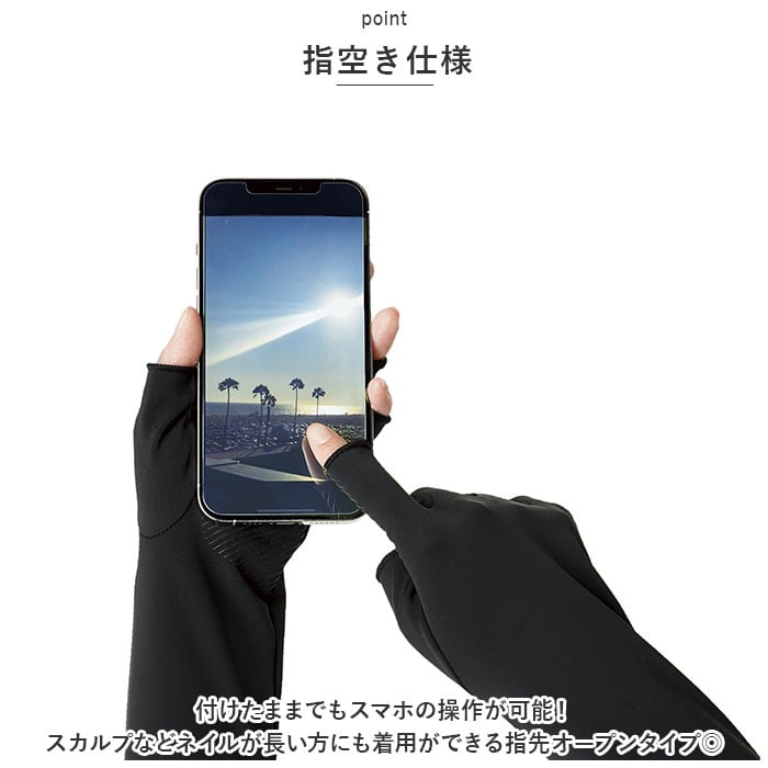 ・付けたままでもスマホの操作が可能!スカルプなどネイルが長い方にも着用ができる指先オープンタイプ◎