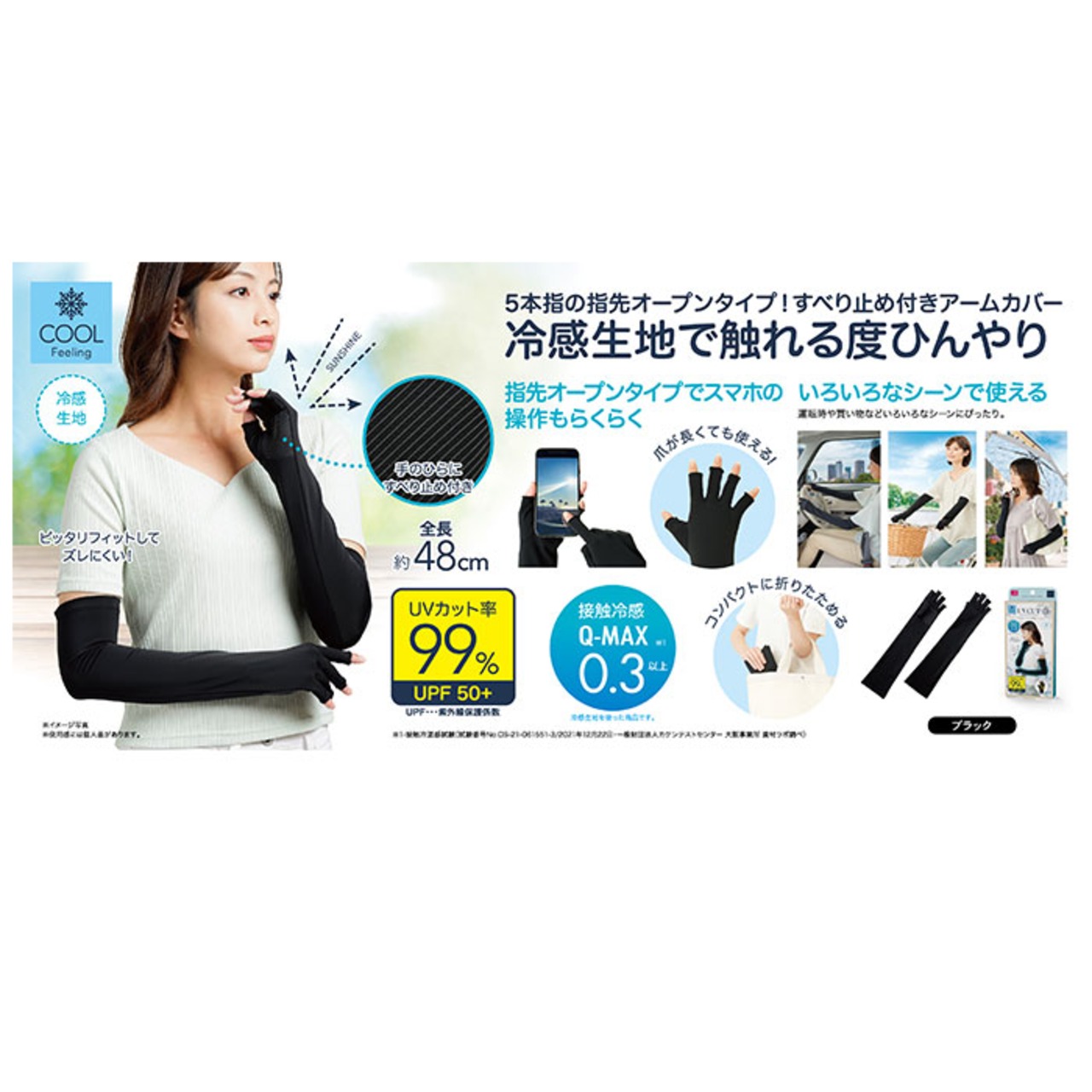 ・夏のお出かけに強い味方♪「グリップ付きクールUV5本指アームカバー」が新登場♪