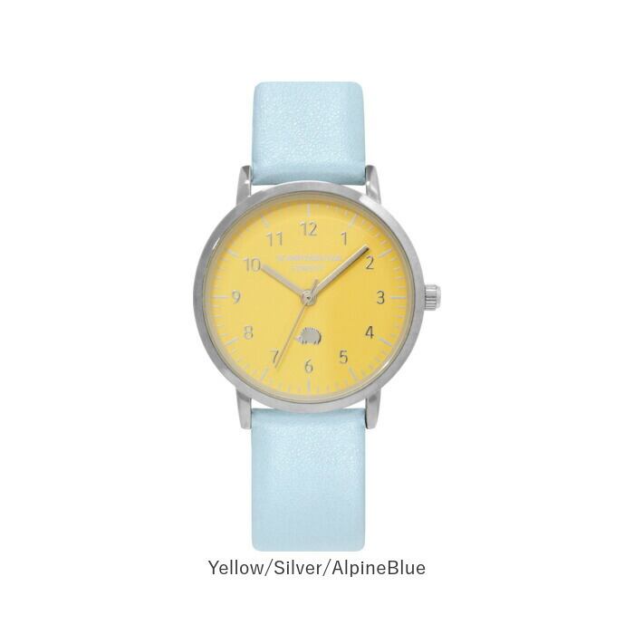 6時のインデックス数字の位置に「ハリネズミ」のアイコンを小さくあしらった文字盤と、明るくポップなカラーのバンドの組み合わせが大人可愛いデザイン。
