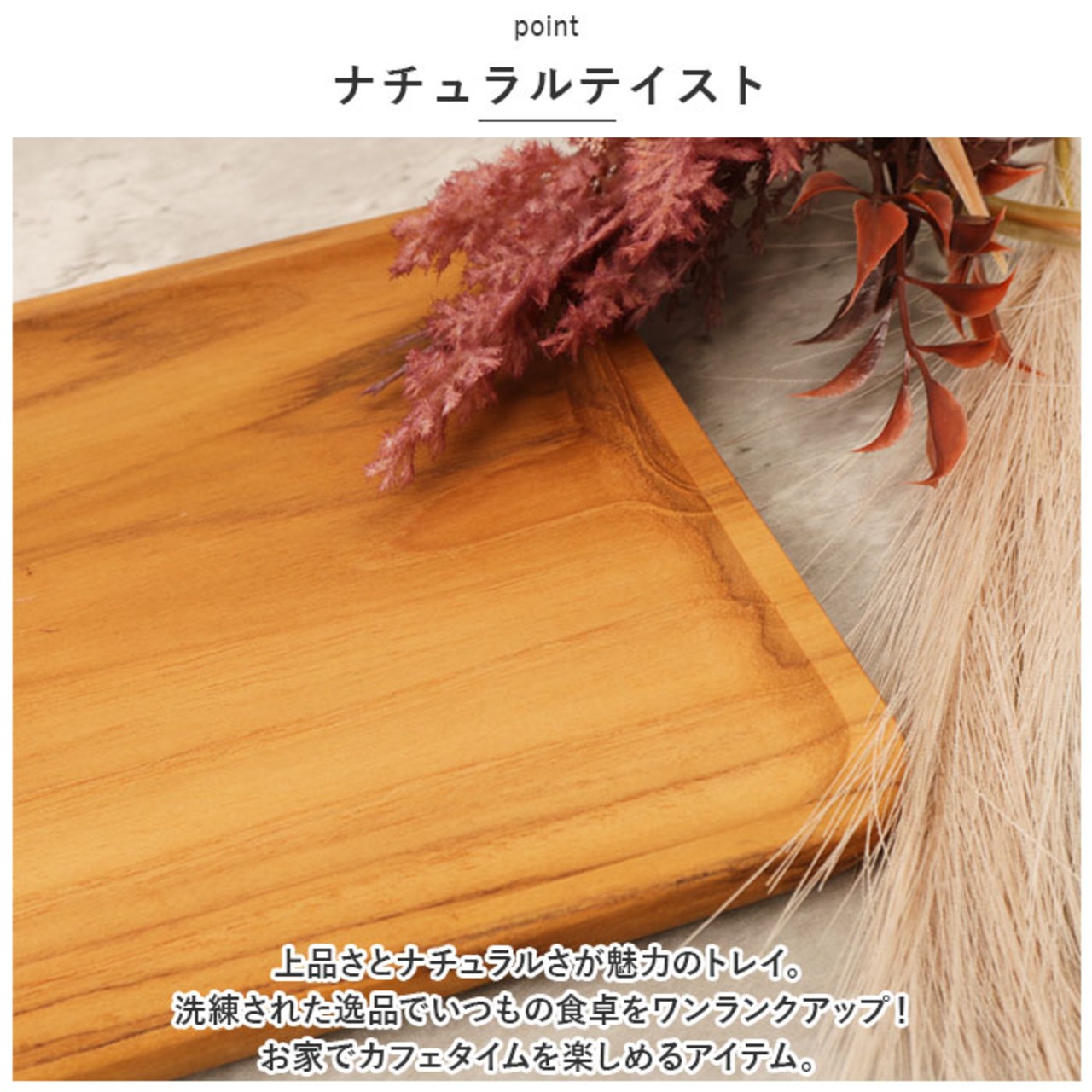 ・上品さとナチュラルさが魅力のトレイ。洗練された逸品でいつもの食卓をワンランクアップ!お家でカフェタイムを楽しめるアイテム。