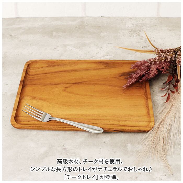 ・高級木材、チーク材を使用。シンプルな長方形のトレイがナチュラルでおしゃれ♪「チークトレイ」が登場。
