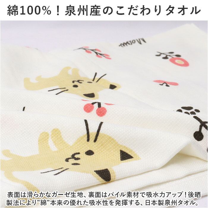 ・表面は滑らかなガーゼ生地、裏面はパイル素材で吸水力アップ!後晒製法により”綿”本来の優れた吸水性を発揮する、日本製泉州タオル。