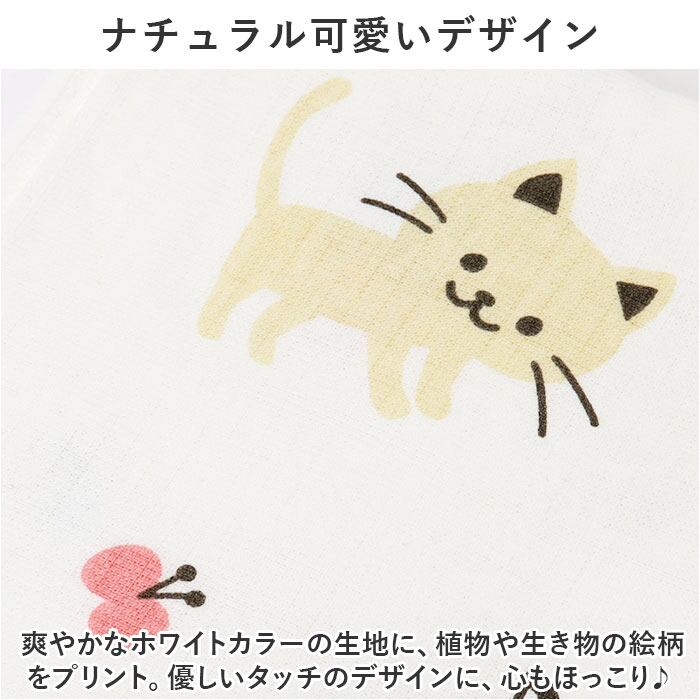 ・爽やかなホワイトカラーの生地に、植物や生き物の絵柄をプリント。優しいタッチのデザインに、心もほっこり♪